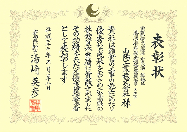 2015.05.28 平成27年度優良建設業者表彰及び優秀技術者表彰を受賞