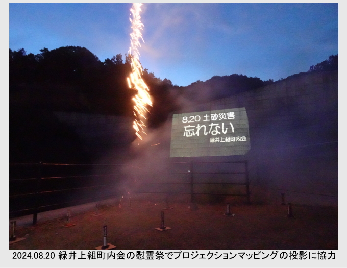 緑井上組町内会の慰霊祭でプロジェクションマッピングの投影に協力
